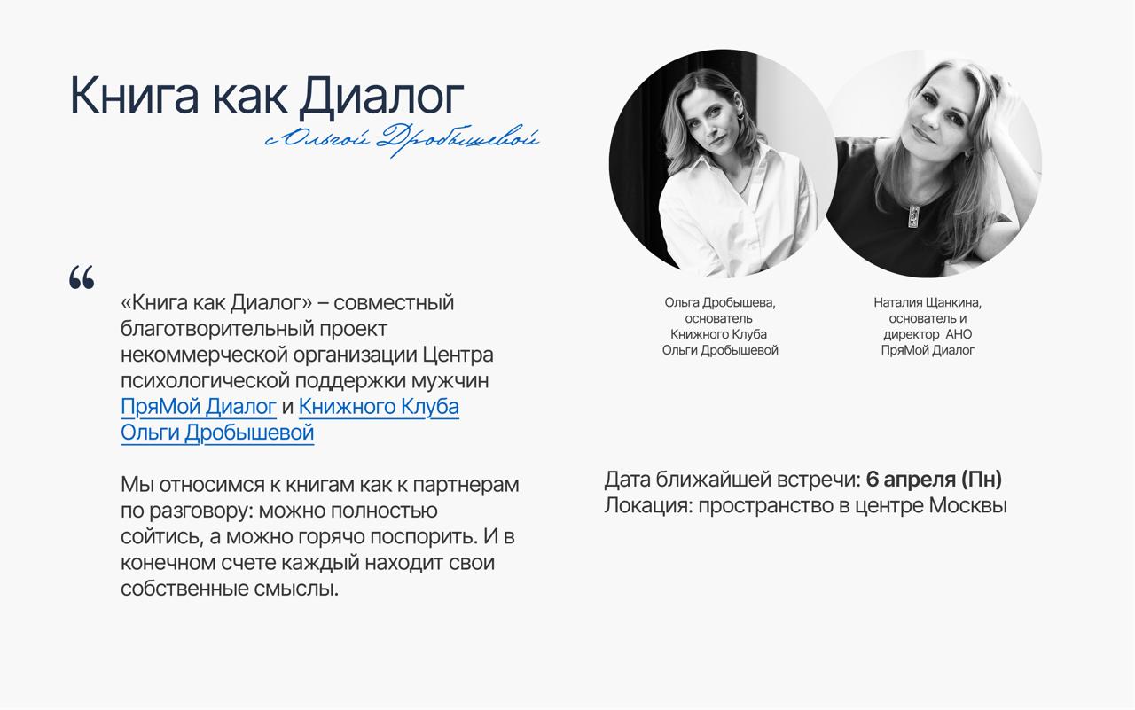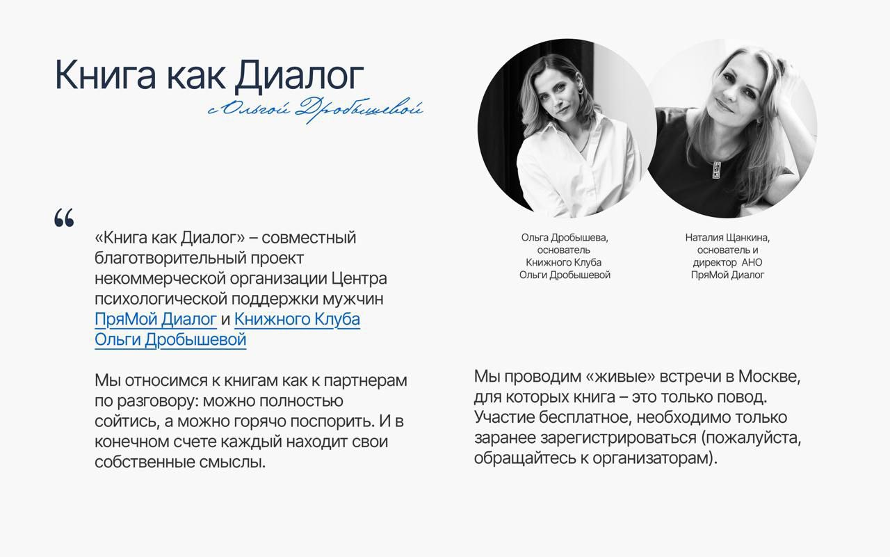 Рады рассказать вам о нашем новом проекте. «Книга как Диалог» – это цикл тематических встреч, которые мы будем проводить в